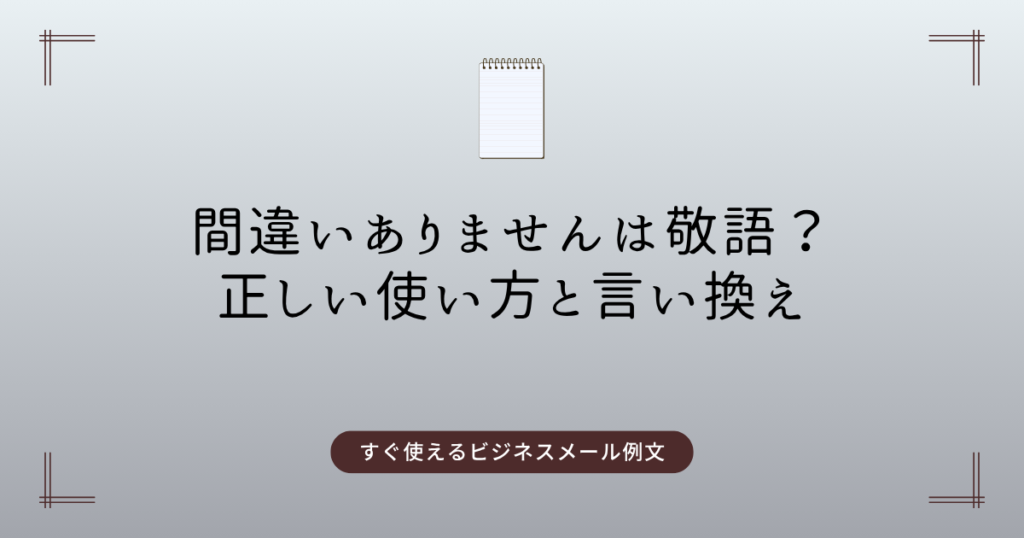 ビジネスメールでよく使われる「間違いありません」という表現。一見丁寧に見えますが、「本当に敬語として正しいのか?」と疑問に感じたことはないでしょうか。 この記事では、「間違いありません」が敬語として適切かどうかを解説しつつ、メールで使うべ...