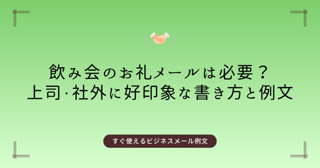 ビジネスシーンにおいて、飲み会後のお礼メールを送るべきか迷う人は少なくありません。 結論から言えば、「必須ではないが、送ることで印象が大きく向上する」ため、特に上司や社外の相手には送るのが望ましい対応です。 本記事では、お礼メールの必要性... -