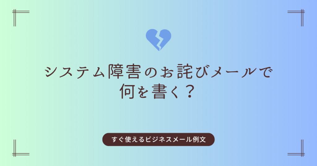 システム障害が発生した際の対応で、特に重要なのが「迅速かつ適切なお詫びメール」です。対応が遅れたり、表現を誤ったりすると、信頼低下につながる可能性があります。 この記事では、発生直後〜復旧後まで使えるお詫びメール例文を12パターン紹介します... -
