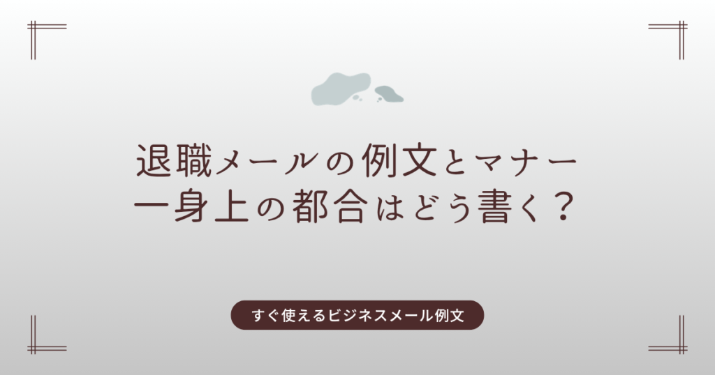退職が決まった際、避けて通れないのが「退職メール」です。 しかし、「一身上の都合ってどう書くの?」「どこまで理由を伝えるべき?」と悩む人は少なくありません。 この記事では、退職メールの基本マナーから具体的な例文、「一身上の都合」の正しい使... -