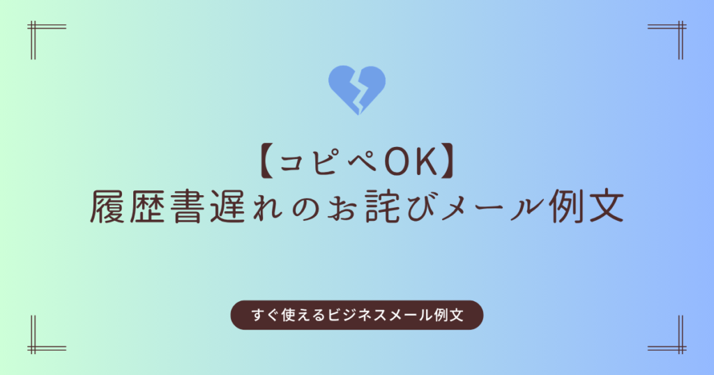履歴書の提出が遅れてしまい、「どう対応すればいいのか…」「もう不採用かも」と不安になっていませんか。 結論から言うと、適切なお詫びメールをすぐに送れば、印象を大きく損なわずに挽回できる可能性は十分あります。 この記事では、 そのまま使えるお... -