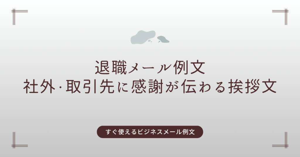 退職が決まった際、社外や取引先への挨拶メールは欠かせません。これまでお世話になった感謝を伝えるとともに、今後の関係性にも配慮した丁寧な対応が求められます。 この記事では、社外・取引先向けの退職メールの基本マナーと、そのまま使えるシンプルな... -