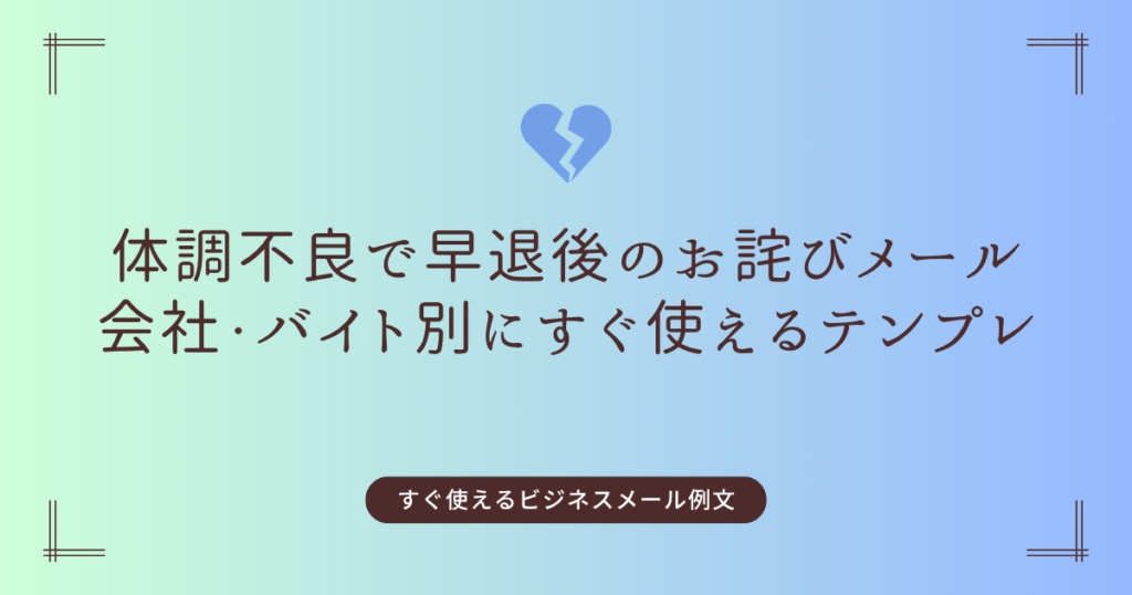体調不良で早退した後のお詫びメール例文|会社・バイト別にすぐ使えるテンプレ集