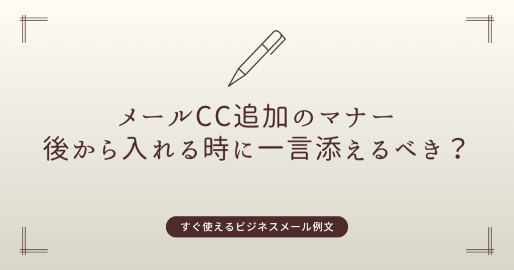 ビジネスメールで「CCに誰かを追加したい」と思う場面は少なくありません。しかし、後からCCを追加する場合、「何も言わずに入れていいのか?」「一言添えるべきなのか?」と迷う人も多いでしょう。 結論から言うと、後からCCを追加する場合は、一言添える... -